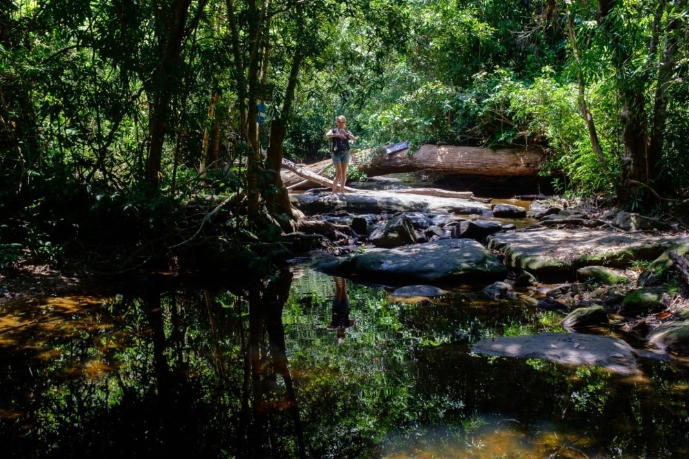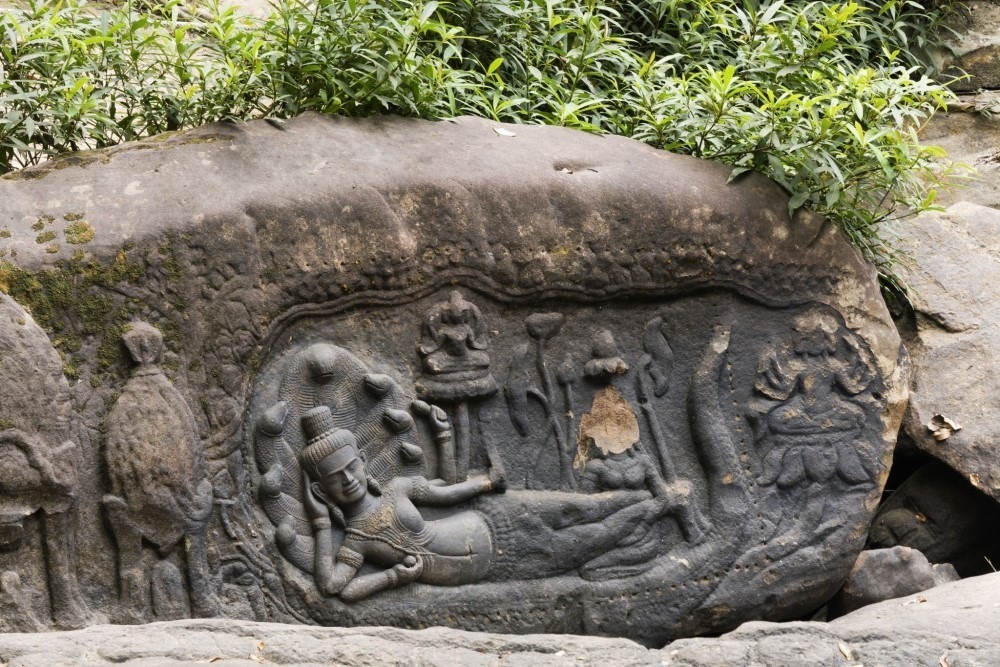 Following your visit to the ACCB, embark on a moderate 3-km trek through the dense jungle to reach Kbal Spean Hill. The trek takes you through a serene forest landscape to the “River of 1000 Lingas”, a sacred site where ancient Hindu carvings are etched into the riverbed. These intricate carvings include representations of deities, animals, and symbolic phallic images, reflecting the spiritual significance of the site and its historical importance.