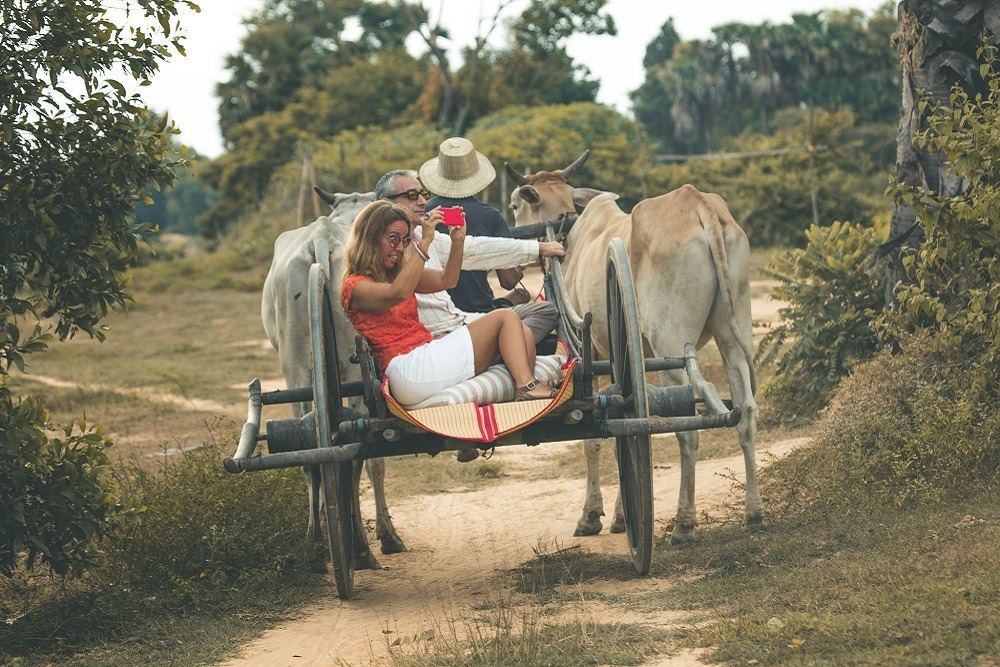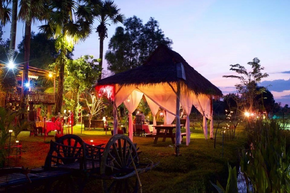 Begin your adventure by departing Siem Reap around 3 PM, embarking on a scenic 20-minute road trip to Svay Romeat Pagoda. Upon arrival at the pagoda, you will board a boat to cross the Western Baray, the world’s largest ancient reservoir. As you glide across the water, you’ll be treated to views that reflect the grandeur of Khmer engineering. Once you reach the other side, a short walk through the charming Kok Tnout Village will lead you to the welcoming gardens of Villa Chandara. Here, you’ll encounter unspoiled landscapes of rice agriculture, unchanged since the time they were depicted in the bas-relief carvings of Bayon.