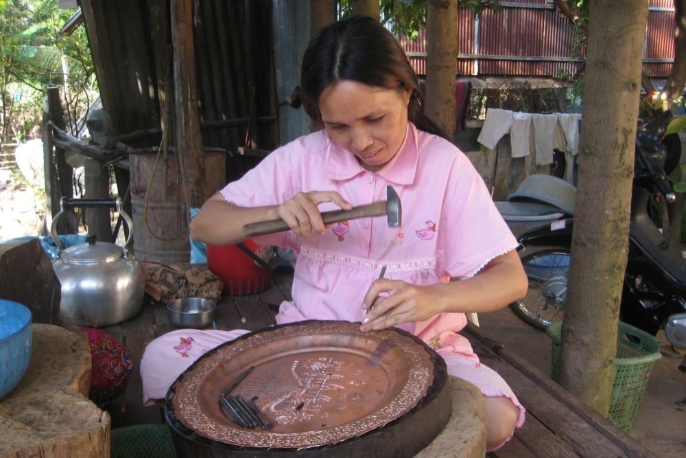 In the afternoon, journey to the village of Kampong Luong, historically the royal port for Oudong and famed for its generations of silversmiths. Witness the intricate craftsmanship as villagers create beautiful silverware, providing a unique window into traditional Cambodian artisanal skills.