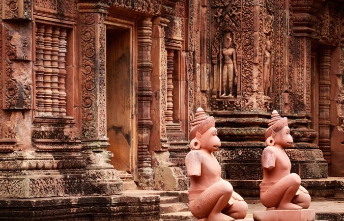 Continue to Beng Mealea, a jungle-covered “Indiana Jones” style temple, then visit Banteay Srei, famed for its intricate pink sandstone carvings. En route, experience authentic village life at Preah Dak.